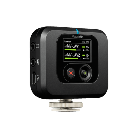 - Standalone MoveMic Receiver for use with cameras and computers.